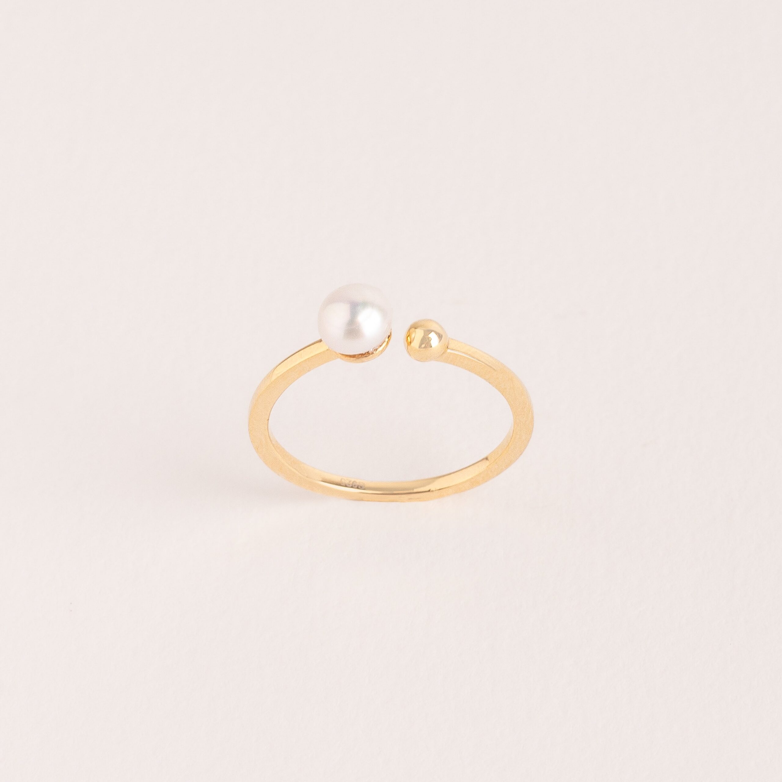 Nuestro Anillo Silvia sutil y versátil, este anillo regulable destaca por su diseño delicado coronado con una perla que irradia pureza y elegancia.