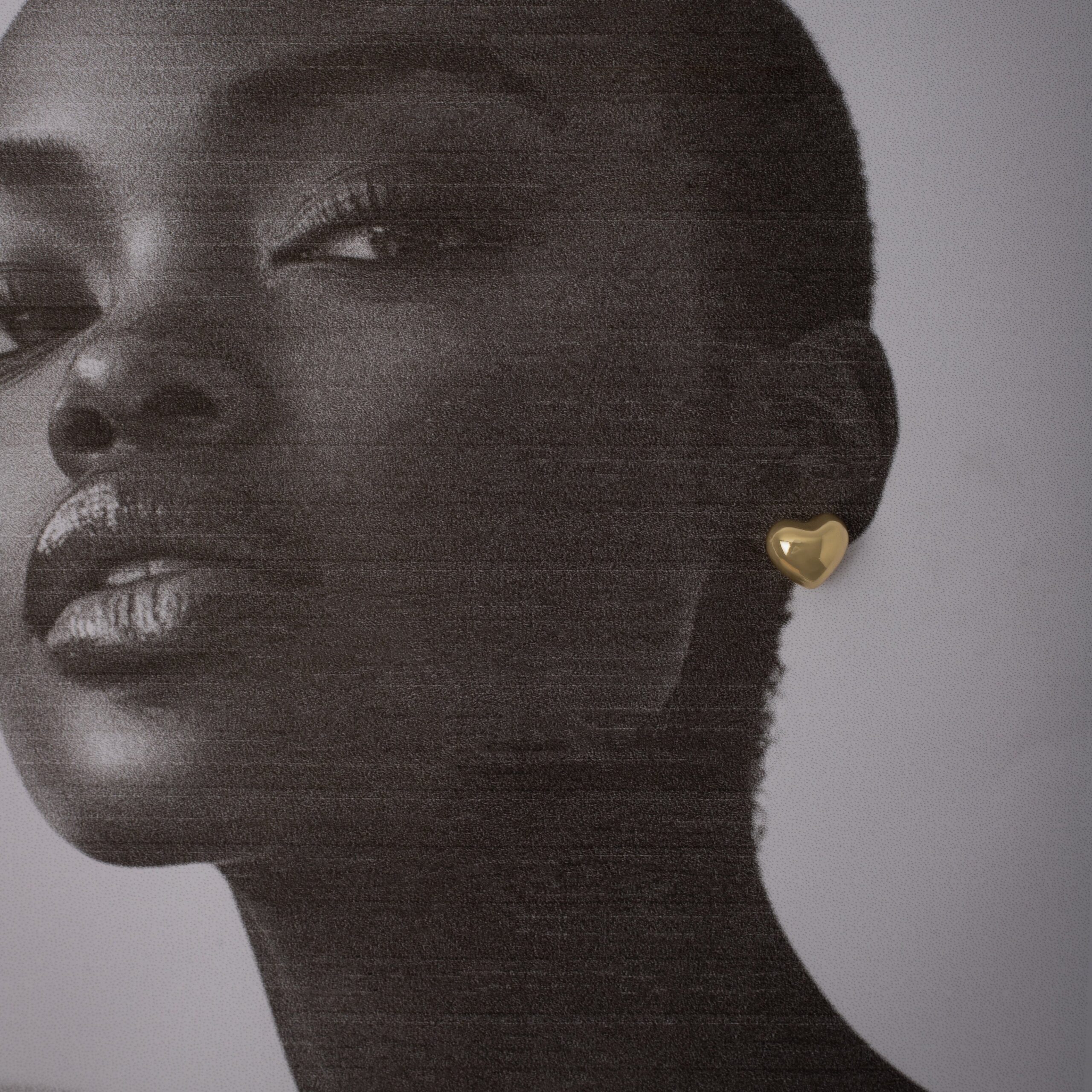Nuestros Aretes Mini Heard son tiernos y elegantes aretes en forma de corazón bombeado con acabado dorado. Su diseño voluminoso los convierte en un accesorio moderno y romántico, perfecto para resaltar cualquier look con un toque delicado.
