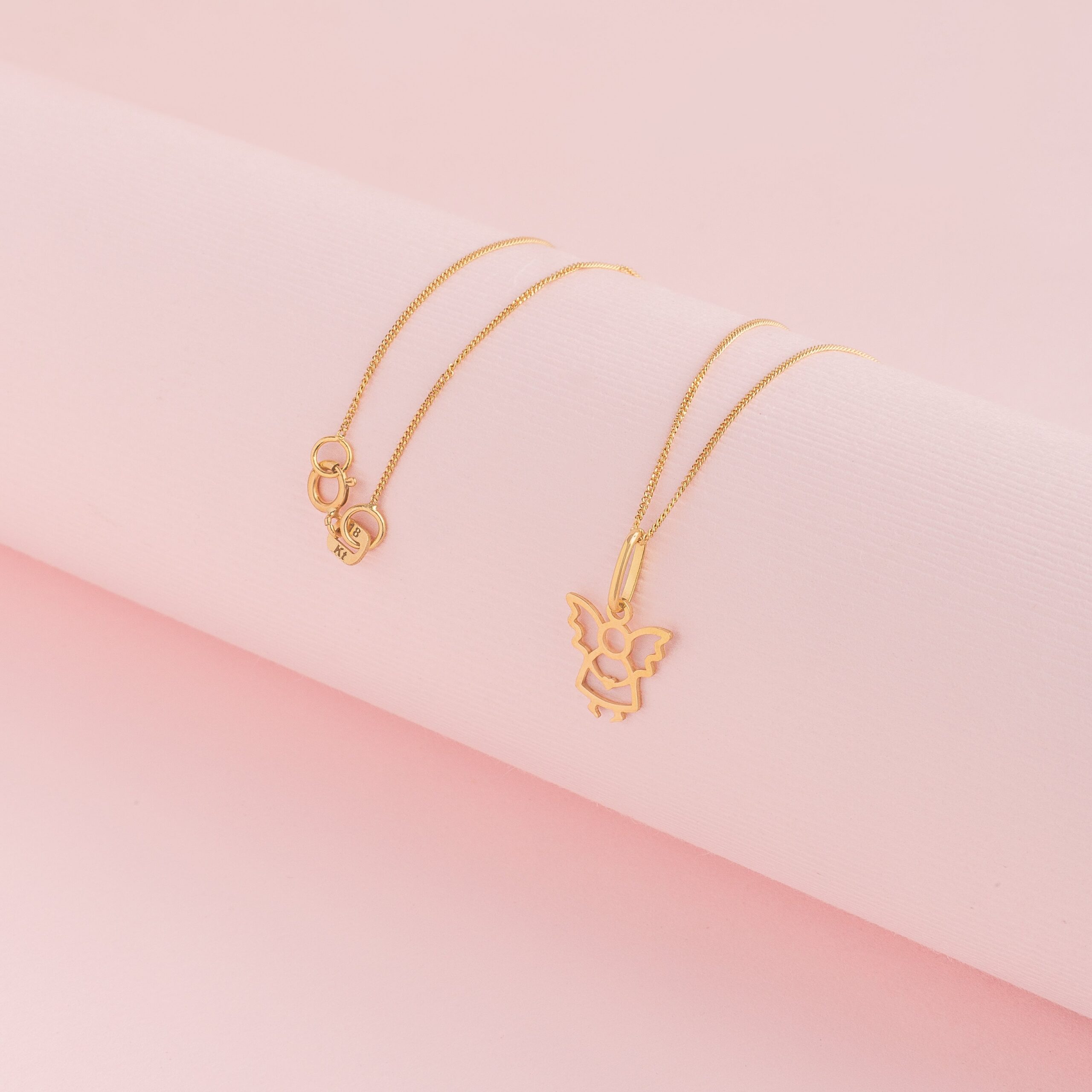 Nuestro encantador collar captura la ternura y la protección que simboliza la figura angelical. Con detalles finos y delicados, el diseño refleja la pureza y la serenidad de un ángel, con sus alas abiertas que transmiten un mensaje de amor y cuidado.