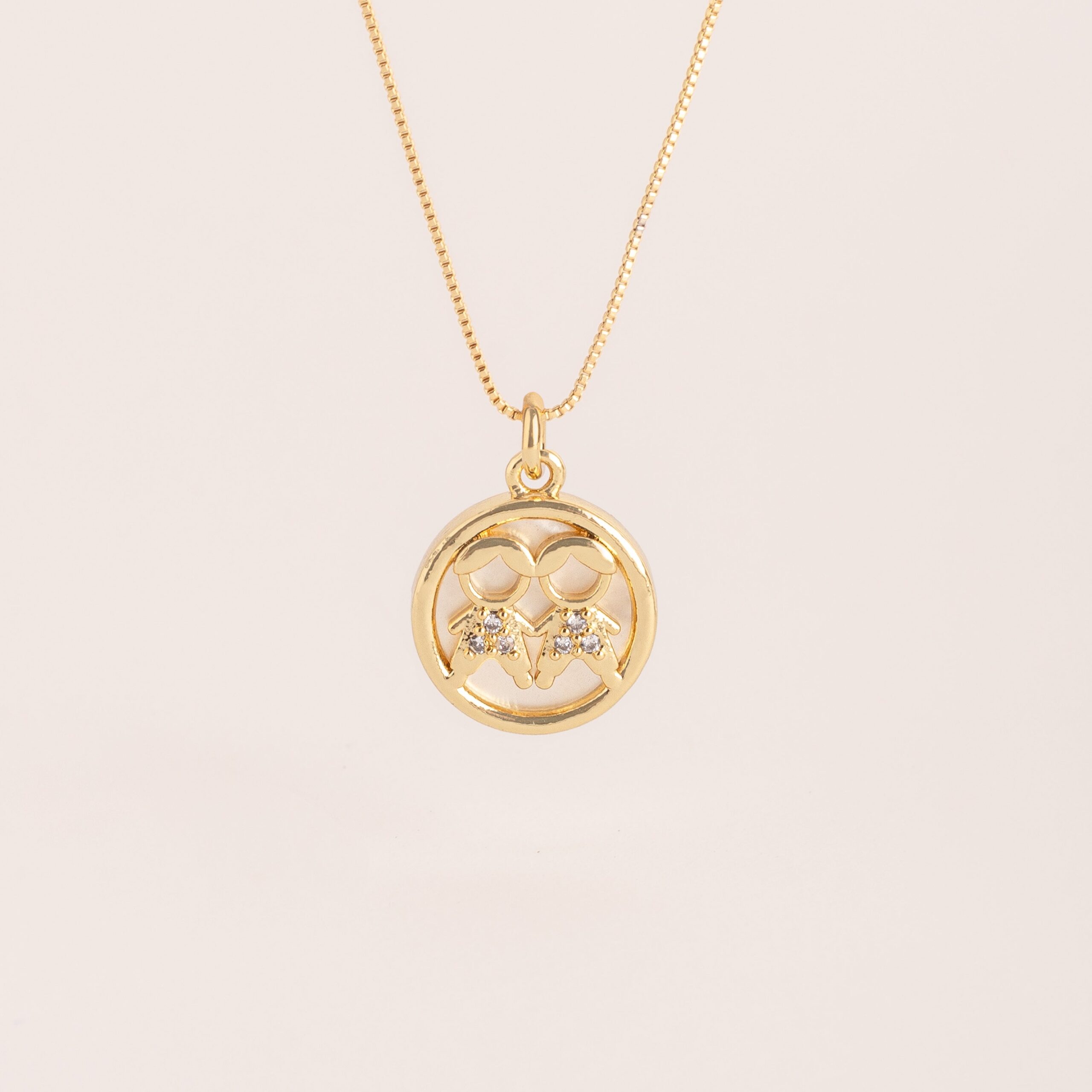 Nuestro Collar Dulce Dúo símbolo de amor puro y conexión eterna. Este hermoso collar cuenta con un delicado dije que representa a dos niños uno al lado del otro, ideal para madres, abuelas o tías que desean llevar siempre cerca a sus pequeños.