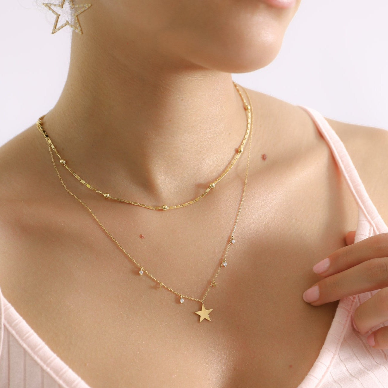 Collar Estrellas y Puntos Luz (plata bañada en oro)