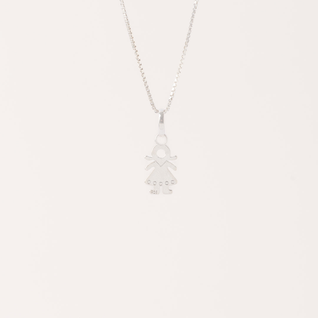 Nuestro Collar con dije de niña en Plata 925, un accesorio simbólico y elegante que representa amor y cercanía familiar.