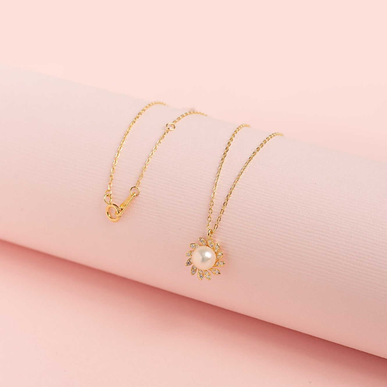 Este encantador collar combina la belleza radiante del sol con la delicadeza atemporal de una perla. El sol, símbolo de vitalidad y energía, se une a la perla, representando la pureza y la feminidad. La combinación de estos elementos naturales crea una pieza única que irradia elegancia y sofisticación. Lleva este collar como un recordatorio de la belleza eterna de la naturaleza y deja que su brillo ilumine cada momento de tu día.