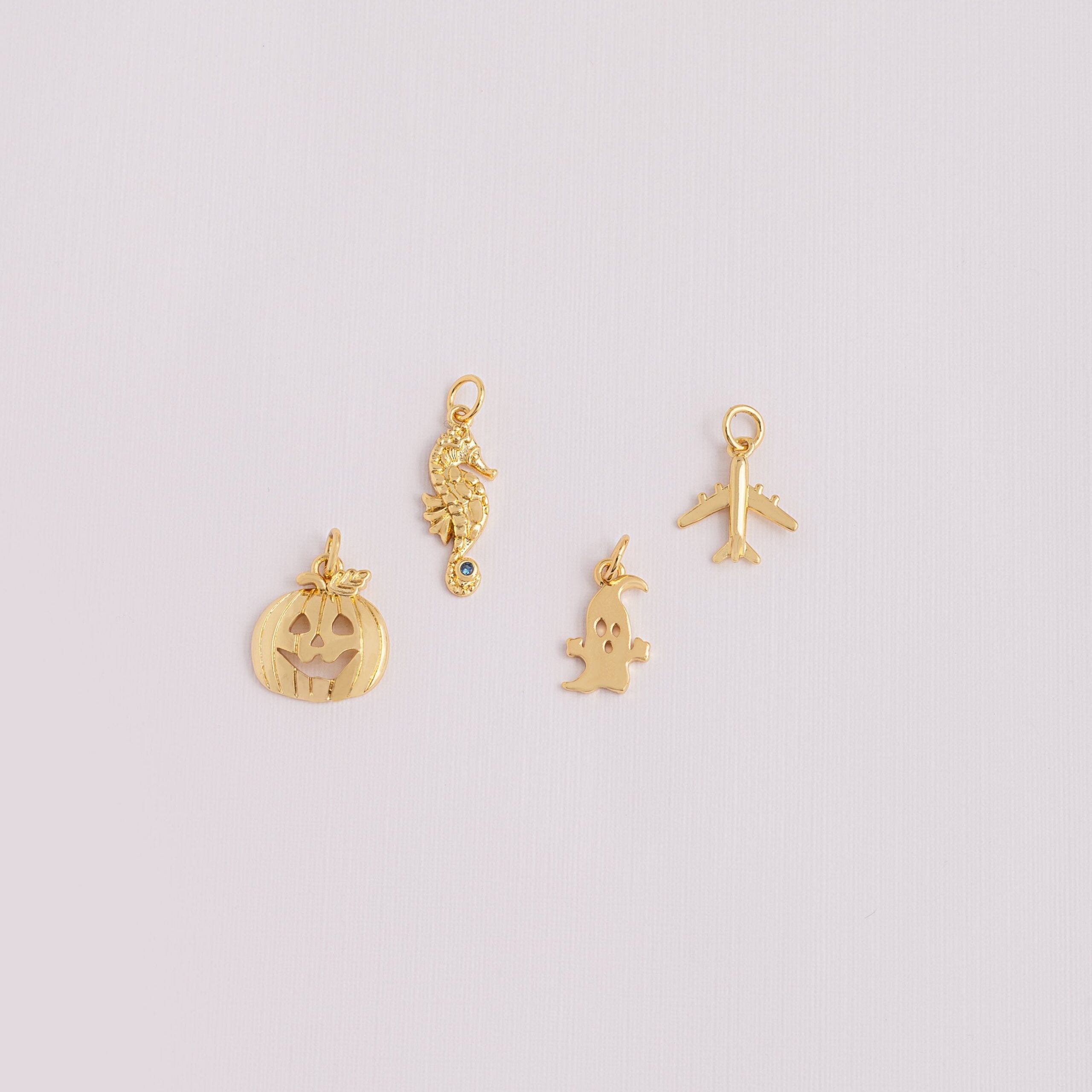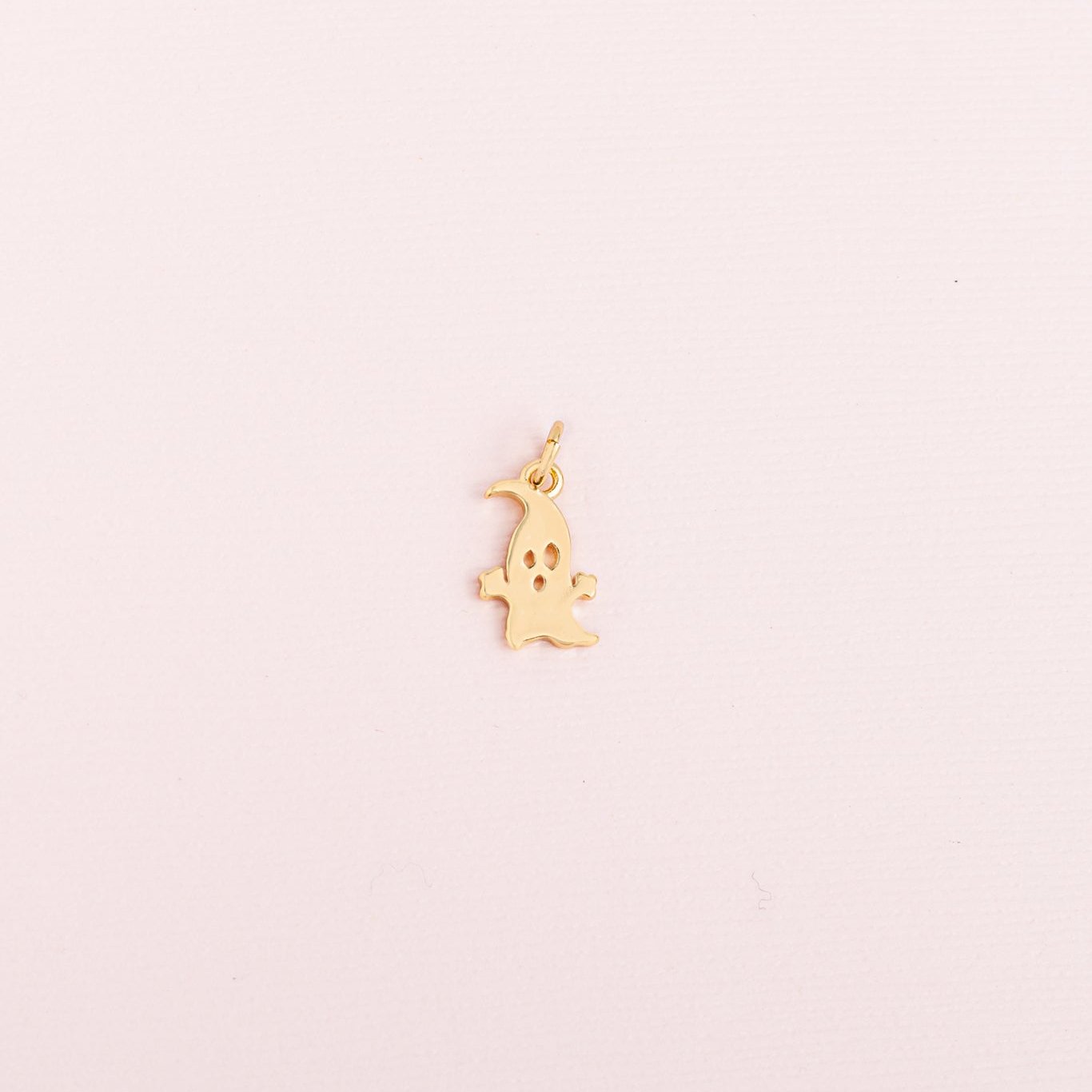 Tierno dije en forma de fantasma con acabado dorado, ideal para darle un aire divertido y festivo a tus accesorios. Perfecto para combinar con pulseras, collares o cadenas y lucir un estilo original en esta temporada de Halloween .
