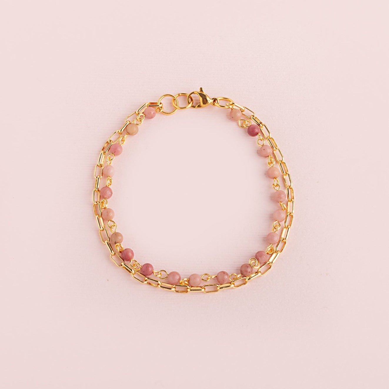 Esta impresionante pulsera combina la belleza de las piedras naturales con la elegancia atemporal de una cadena de eslabones.