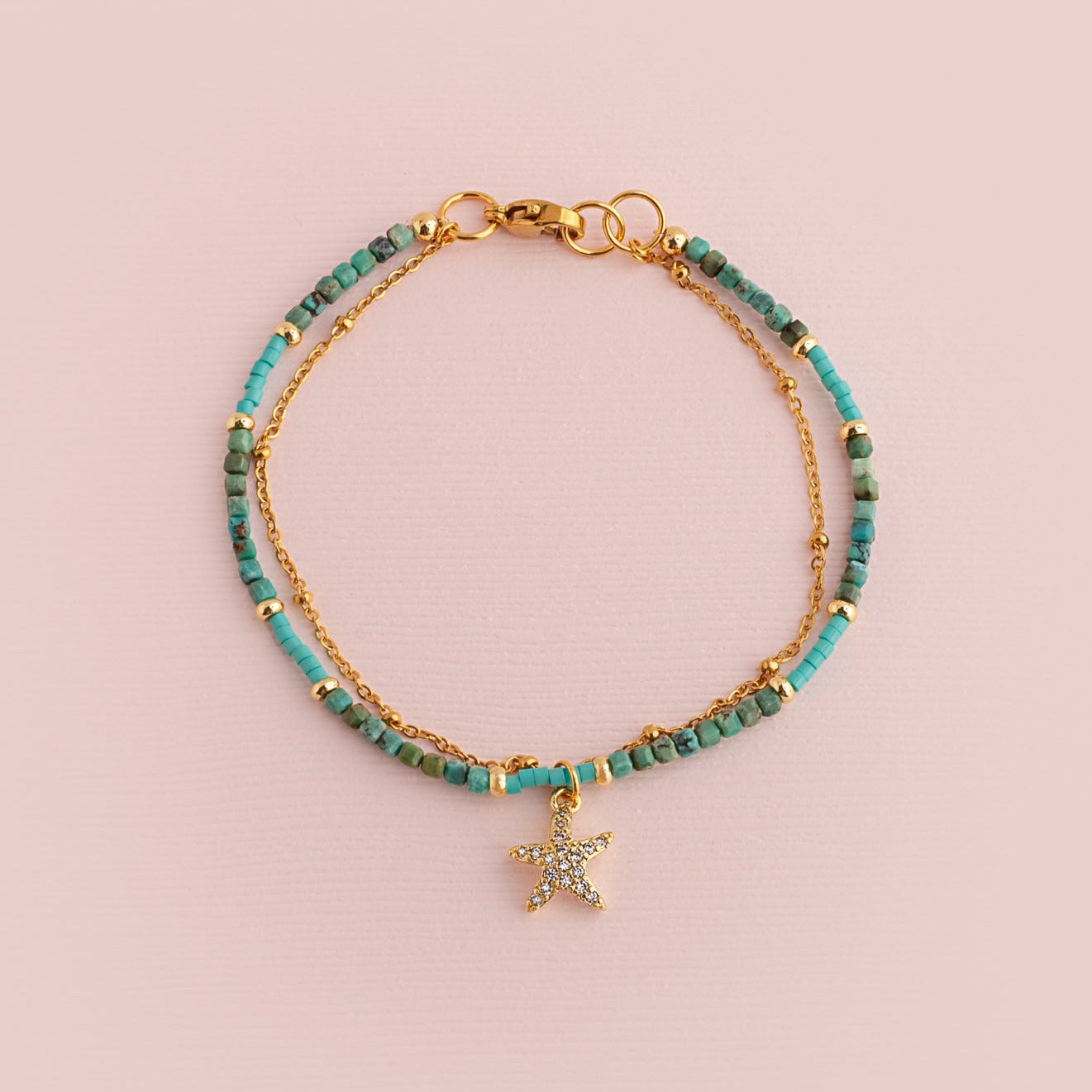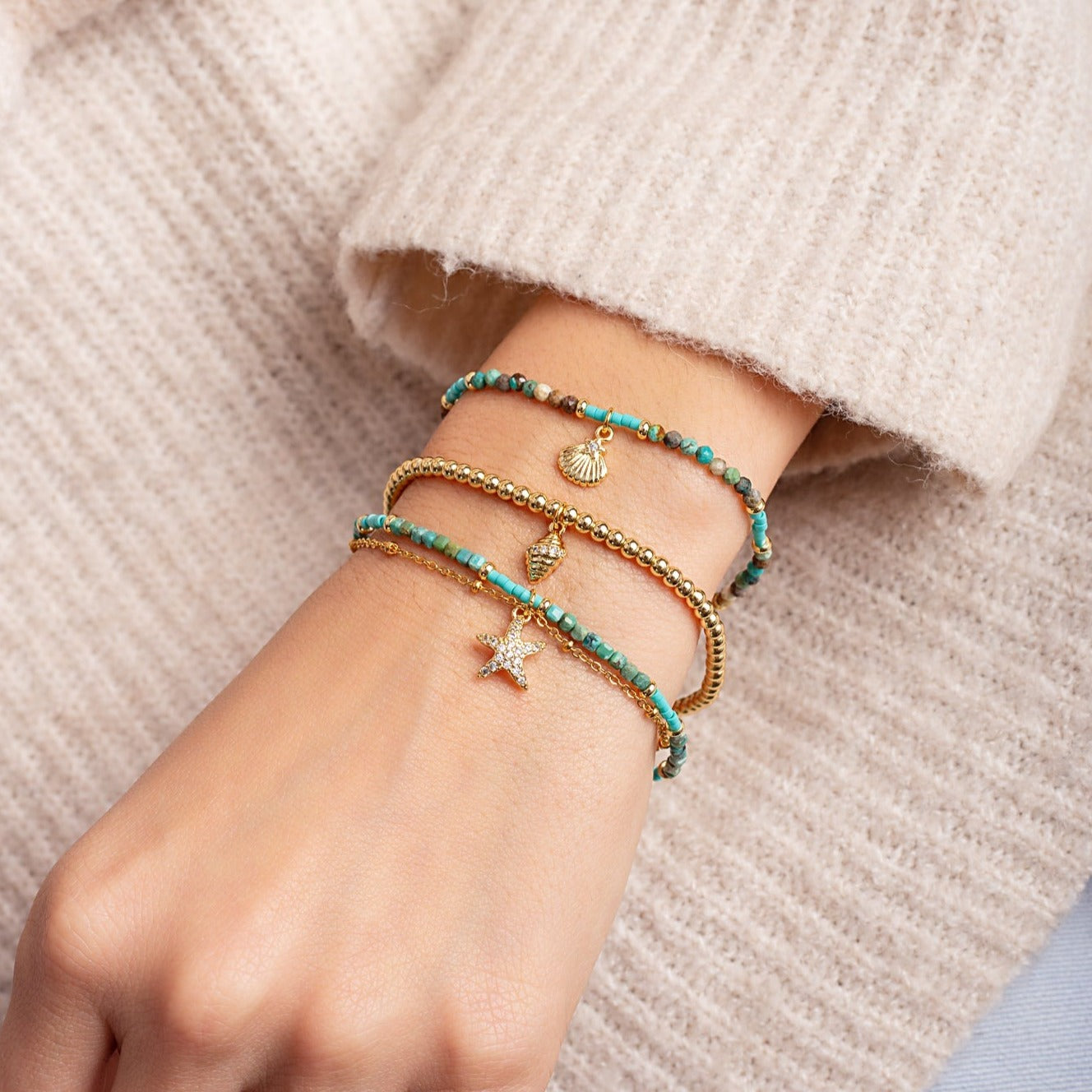Sumérgete en la belleza del océano con nuestra encantadora pulsera «Estrella de Mar». Esta pulsera presenta un símbolo de gracia y misterio que evoca la serenidad y la tranquilidad del mar.